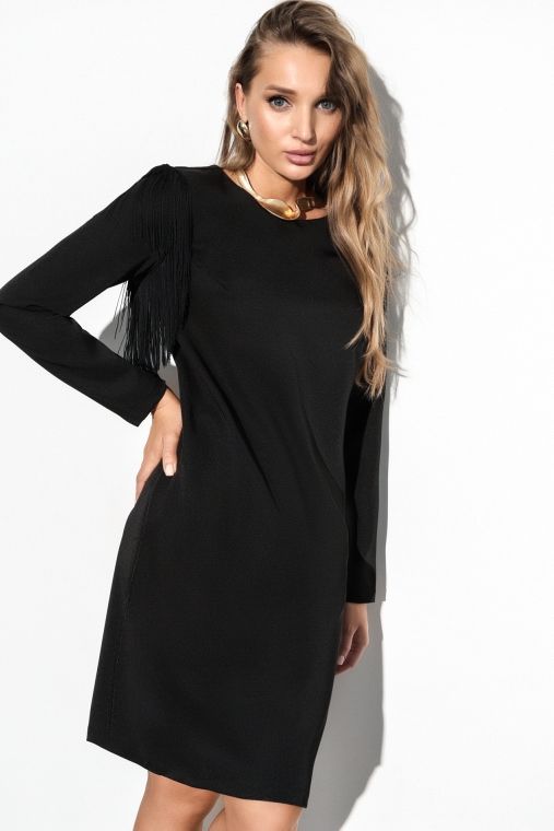 Чёрное платье с бахромой на рукавах