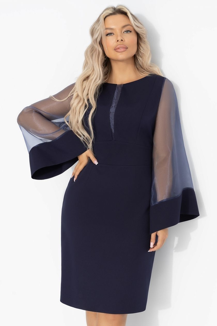 Платье-футляр синее со свободными рукавами