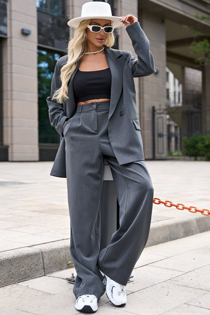 Стильные брюки серого цвета с карманами J-ШЮ160-17 купила в интернет-магазине Beautifull. Женщина в любом возрасте хочет выглядеть модной и красивой. Спасибо, что доставляете радость