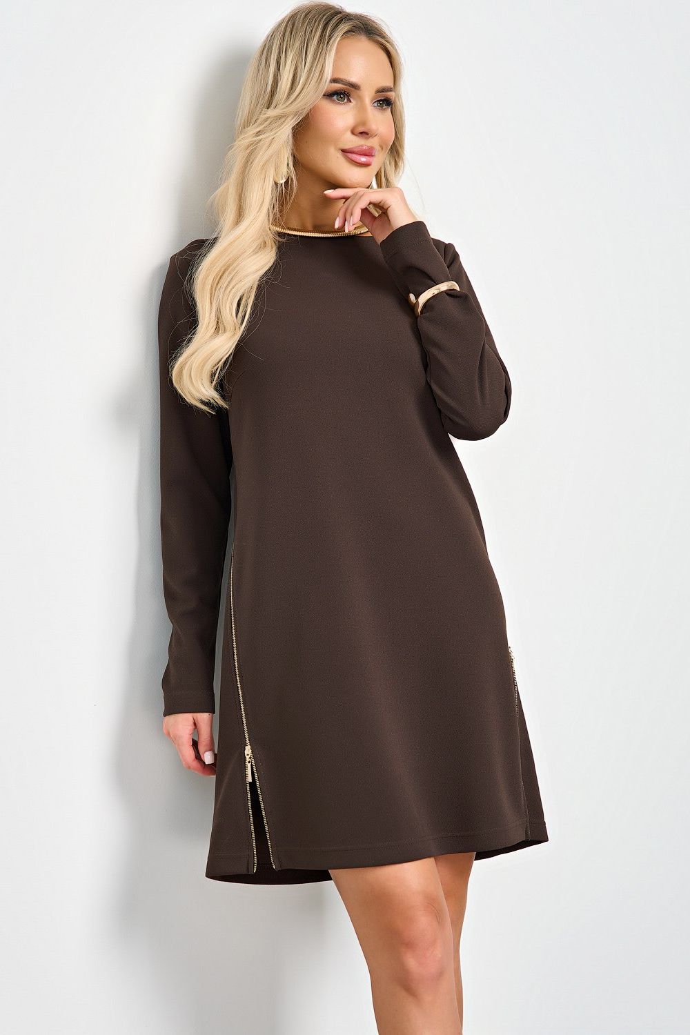 Платье шоколадного цвета с молниями