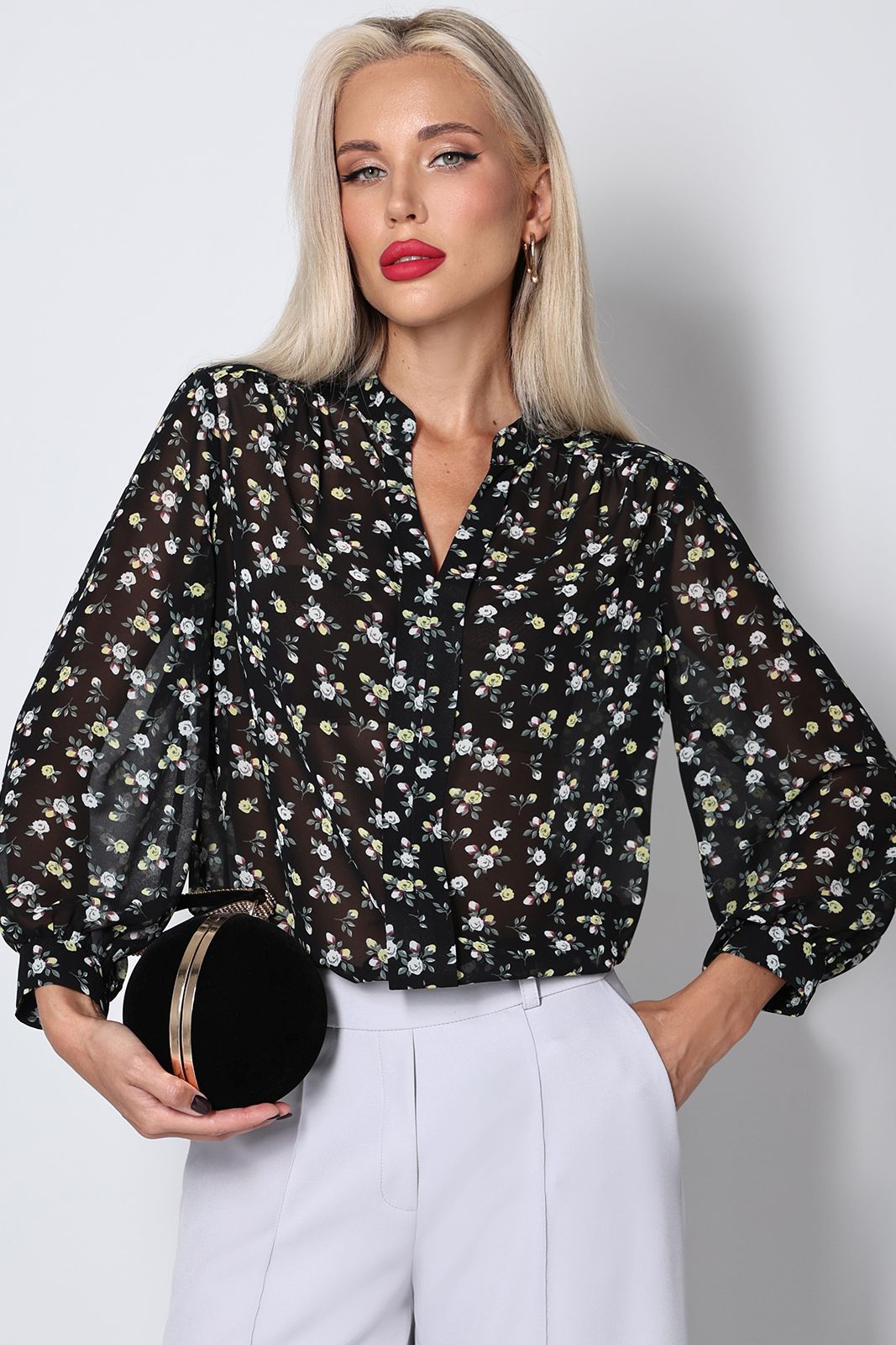 Блузка чёрная с пышными рукавами и воротником стойка Шарлиз, шик нью