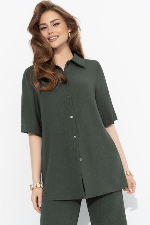 Рубашка зелёная из фактурной ткани