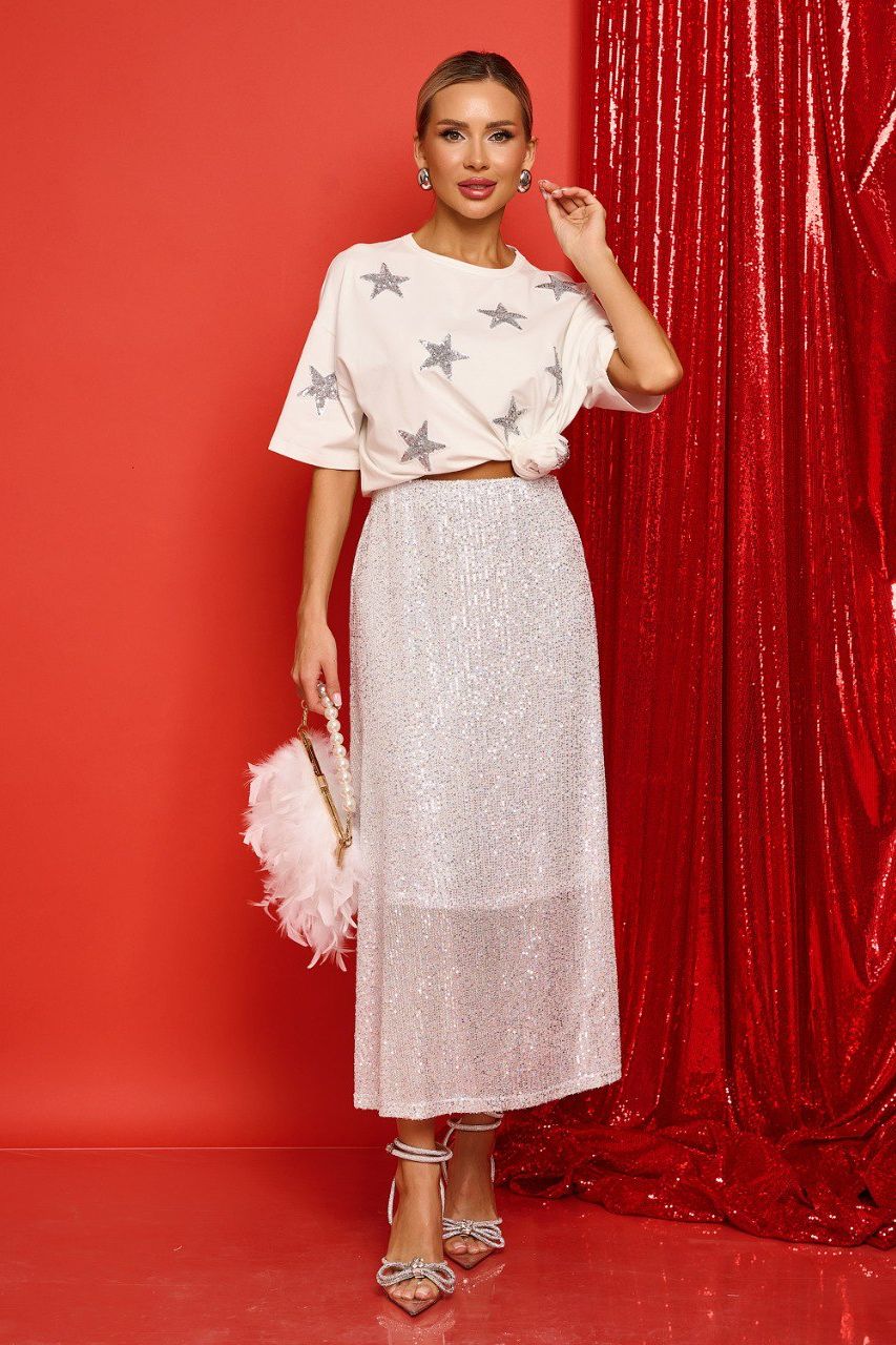 Юбка длинная коричневая из сетки-стрейч с принтом