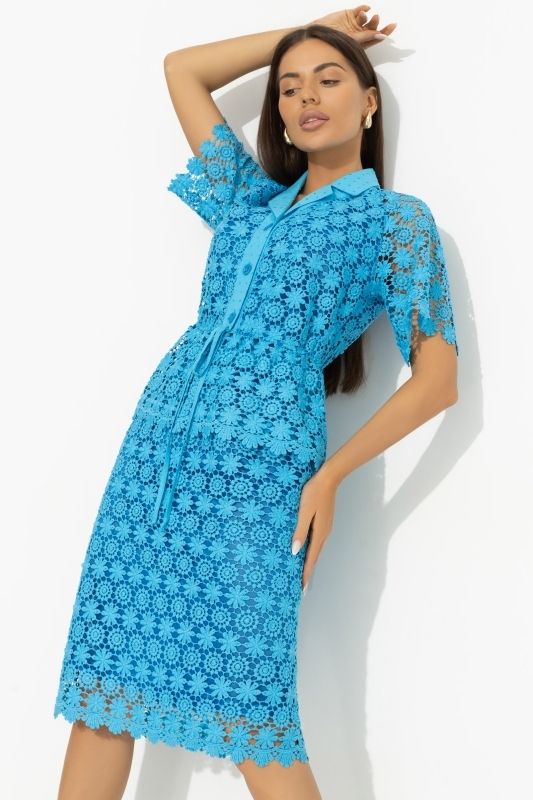 Костюм бирюзовый с юбкой из кружева на подкладе