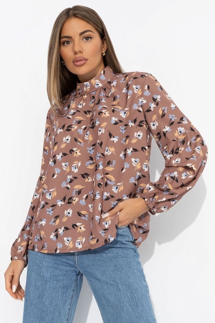 Блуза коричневая с длинными рукавами