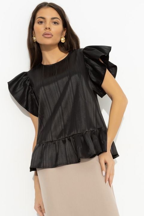 Блузка нарядная атласная чёрная с рукавами-крылышки