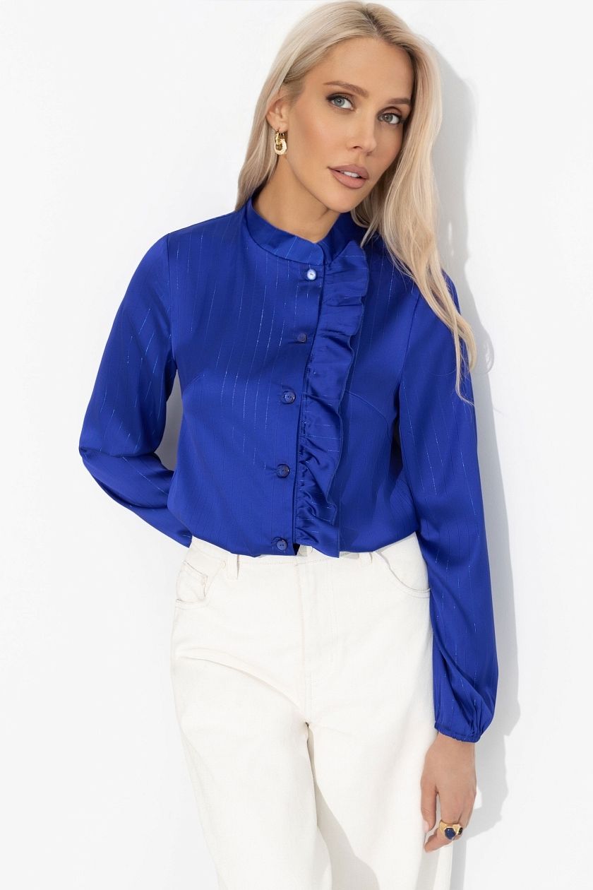 Блузка синяя с люрексом с воланом