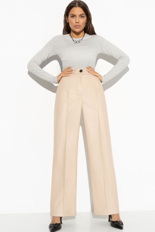 Брюки бежевые из экокожи со стрелками