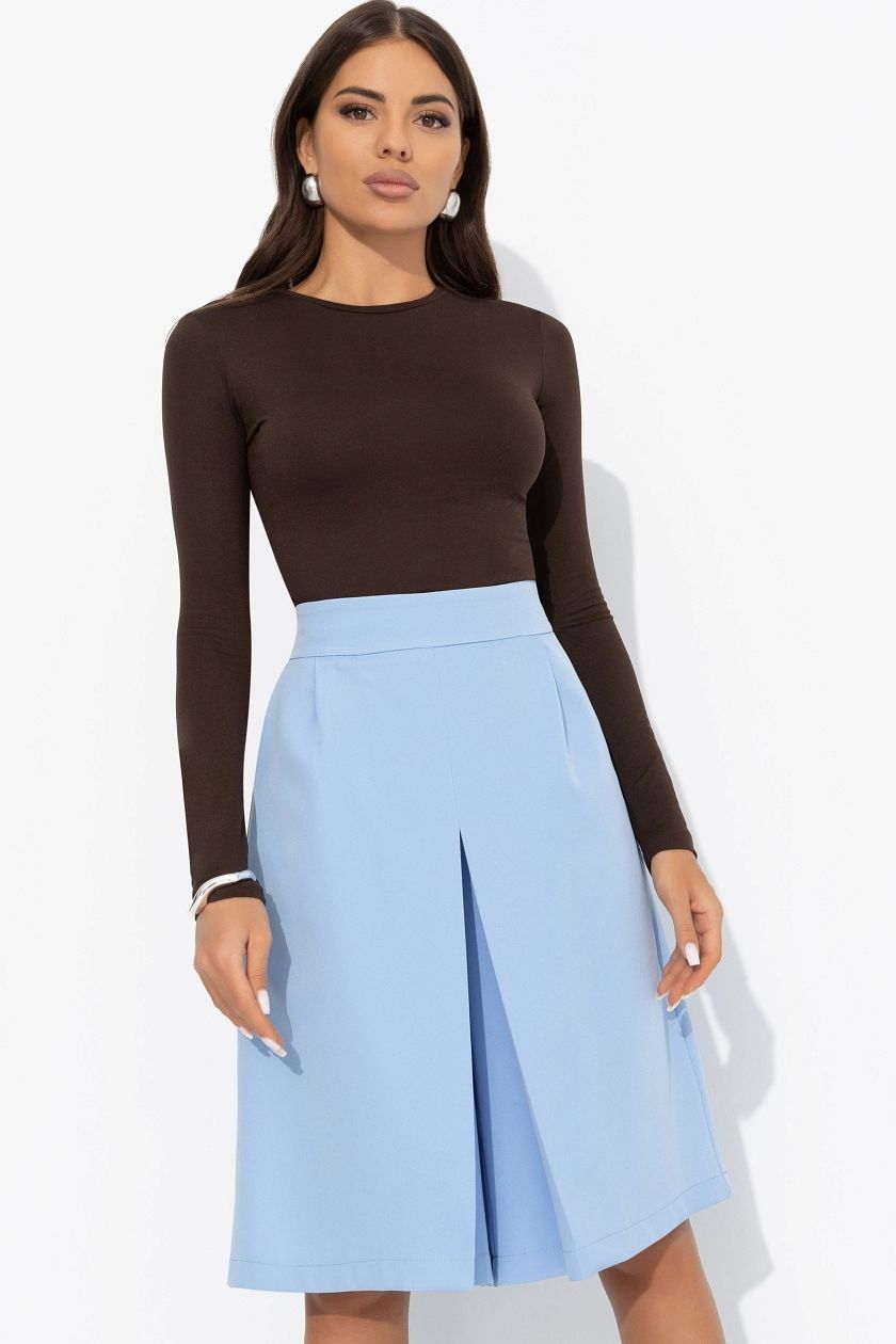 Юбка-шорты голубые с карманами от компании Charutti. Модель свободного силуэта, выполнена из костюмной ткани "барби". Посадка на талии. Изделие застегивается на молнию сбоку. Идеальный выбор для создания стильного образа.