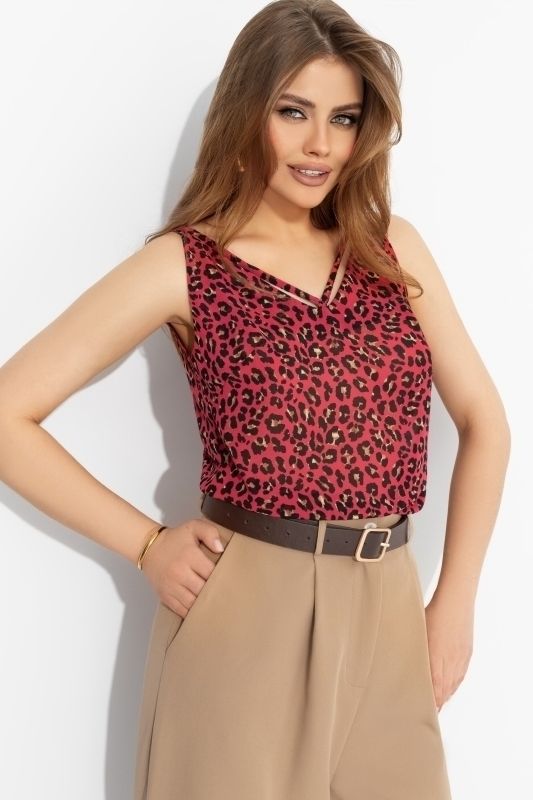 Топ красный с леопардовым принтом