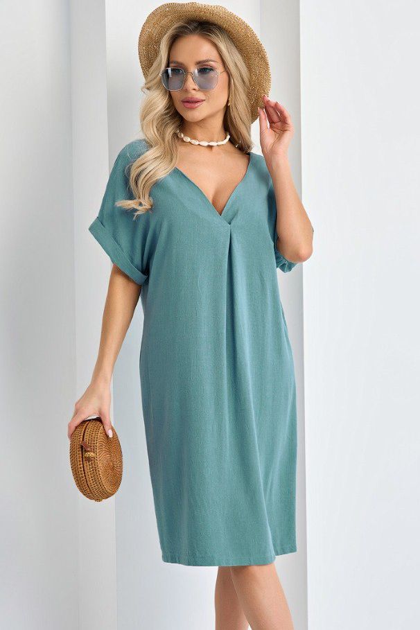 Сарафан льняной с карманами в цвете фуксия 44 размера