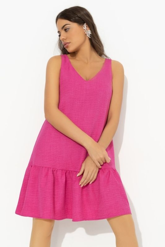 Сарафан льняной розового цвета с притачным воланом