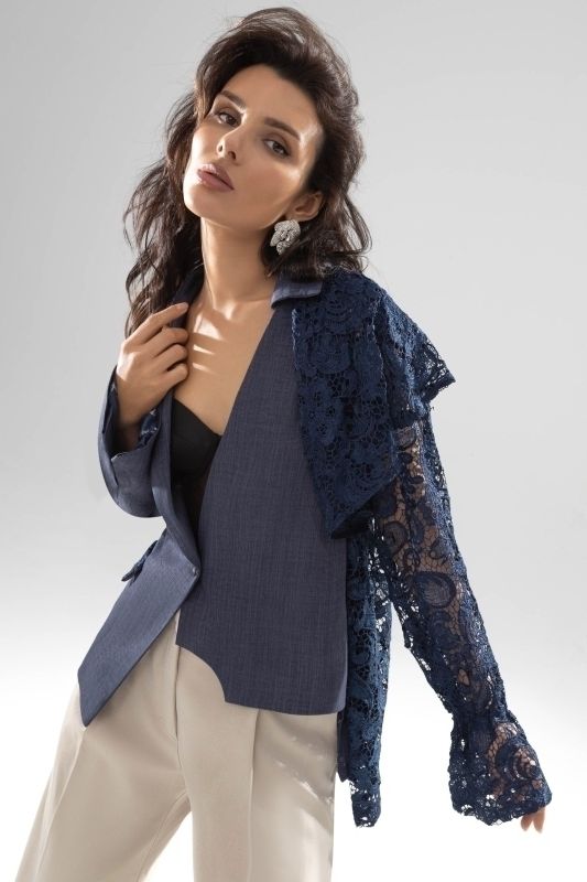 Жакет синий комбинированный с кружевом
